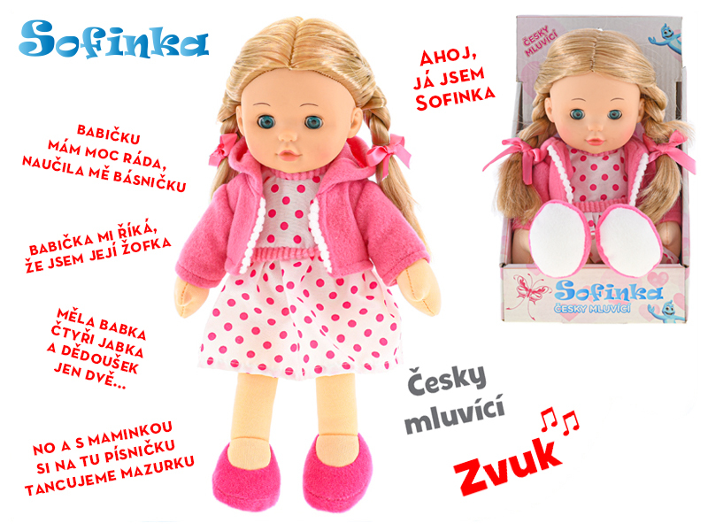 Objavte radosť a zábavu s bábikou Sofinkou, ktorá nielen žmurká, ale aj hovorí po česky! Vďaka mäkkému telu je perfektnou spoločníčkou na maznanie aj hranie, a to všetko s pohonom na batérie, ktorý prináša ešte viac interaktívnych zážitkov.