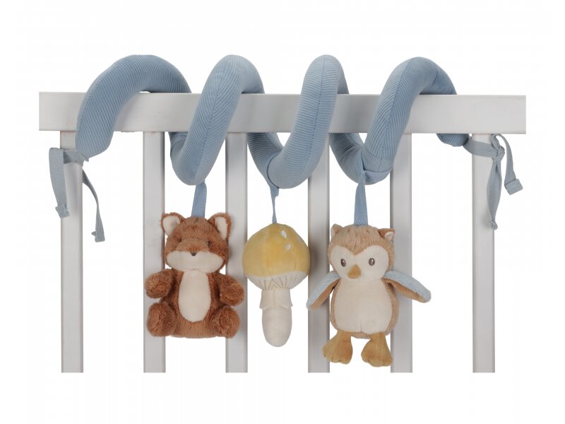 Textilní spirála se zavěšenými hračkami v podobě lišky, sovy a houbičky zabaví vaše miminko v postýlce, kočárku i v autosedačce. Měkké hračky vyrobené z jemného plyše chrastí, šustí a nabízí různé textury pro zkoumání. Hračky stimulují koordinaci ruka / oko dítěte.Spirálu snadno připevníte...
