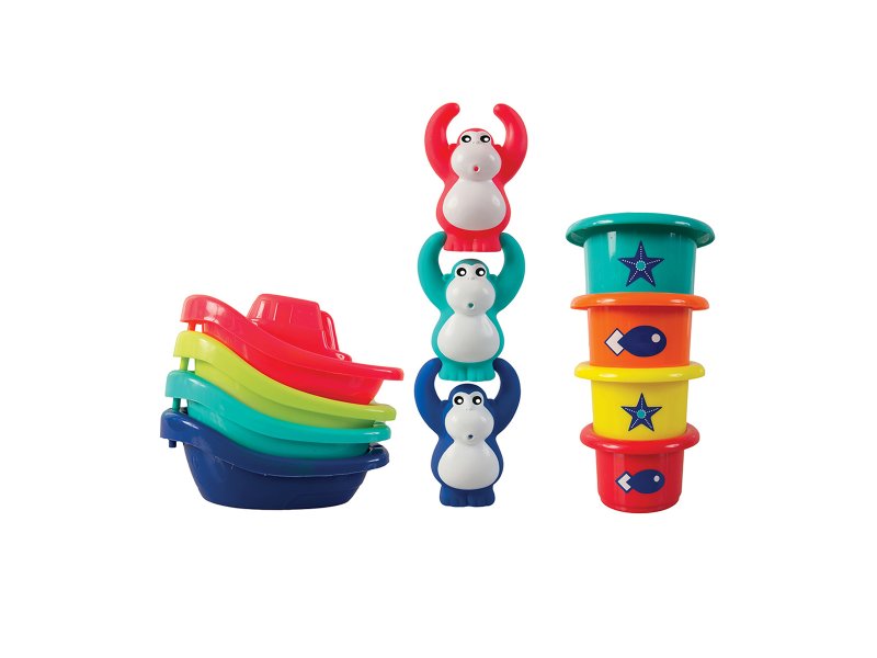 Sada hraček do koupele s rošťáckými opičkami nabízí nepřeberné možnosti hraní s vodou ve vaně. Čtyři lodičky plují po hladině samostatně nebo propojené za sebou, stejně tak tři opičky mohou ve vodě dovádět každá zvlášť nebo spojené dohromady. Čtyři kelímky s otvory pro cezení vody je možné...