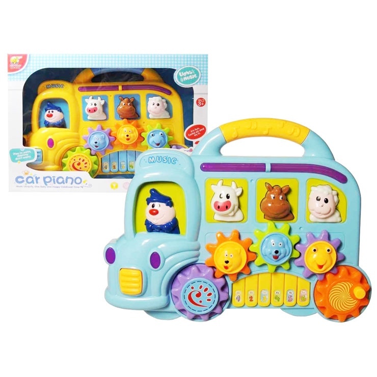 Piánko ve tvaru autobusu s množstvím funkcí. Mechanické kroucení ozubených koleček. Přepínání módu pomocí žlutého tlačítka. Mód 1 - klávesnice - při stisku kláves slyšíš počítání anglicky, hlavičky zvířat - po stlačení jednotlivých hlav uslyšíš anglicky název zvířátka a zvuk, který vydává. Mód 2...
