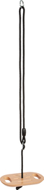 Ma drewniane siedzisko w kształcie dysku. Owal posiada wycięte specjalne uchwyty podnoszące bezpieczeństwo zabawy.