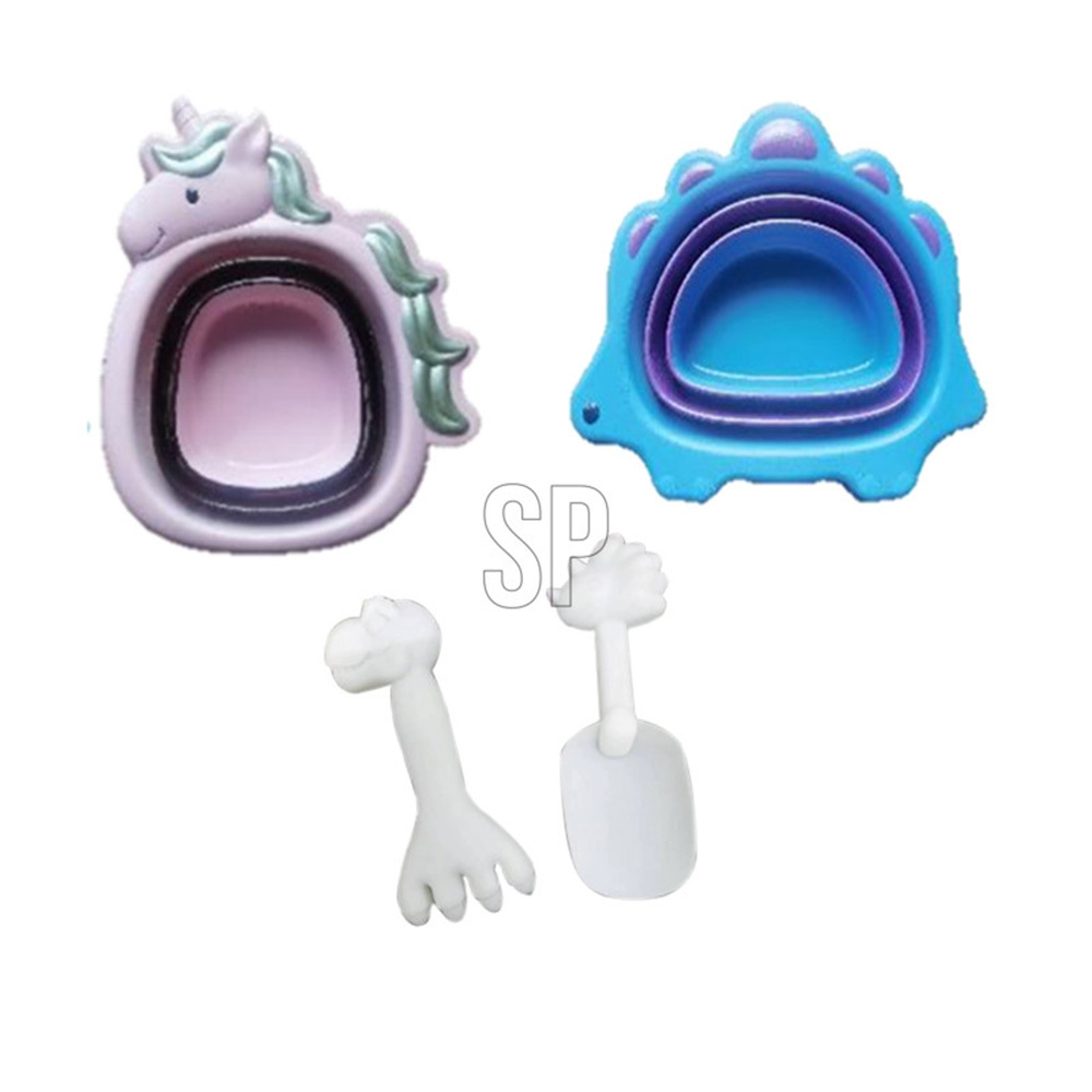 Plážový kbelík skládací + lopatka, hrabičky s formičkou (modré, zelené, růžové)