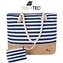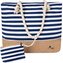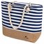 Táto plážová taška je vyrobená z veľmi kvalitného, ľahkého a odolného materiálu, vďaka čomu je vodeodolná, odolná proti oderu a ľahko sa čistí. Jej dizajn v modro-bielych pruhoch s jutovým dnom perfektne evokuje námornícky štýl, ktorý sa hodí nielen na pláž, ale aj na piknik, šport či bežné nosenie v meste.