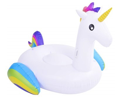 Obří nafukovací lehátko ve tvaru jednorožce je určené k letním hrám nebo odpočinku na vodní hladině. Lehátko je o rozměru 218 x 160 x 120 cm. Materiál: vinyl o tloušce 0,3 mm, maximální nosnost 100 kg. Pro zvýšenou bezpečnost je vybaveno 3 oddělenými nafukovacími komorami a dvěma odolnými madly. Opravná záplata je součástí výrobku.