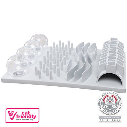 Toto interaktívne ihrisko je navrhnuté odborníčkou na správanie mačiek Helenou Dbalý, aby podporovalo aktivitu a duševnú stimuláciu zvierat od troch mesiacov veku. Jeho protišmykové gumové nožičky zaručujú bezpečné používanie na akomkoľvek povrchu. Či už chcete vašu mačku zamestnať alebo obohatiť jej kŕmenie suchým krmivom, tento produkt je ideálnym riešením.