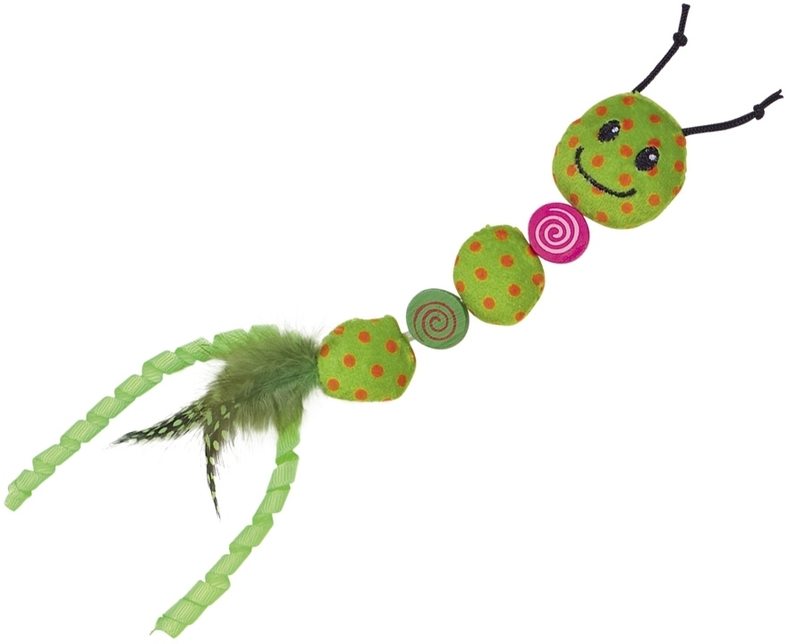 Hračka pro kočky obohacená Catnipem. Catnip neboli šanta kočičí je aromatická bylina, jejíž vůně vábí každý kočičí čumáček. Díky němu bude váš mazlíček hračku zbožňovat. Hračka má podobu červíka a je navíc ozdobená atraktivním peříčkem, které mají kočky tak rády. Červík je plyšový a velký 24 cm....