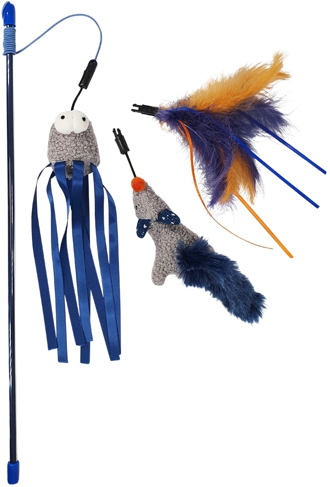 Tyč s kovovým lankem a pírky. Velikost udice 45 cm. Délka provázku z hračkou: 76 cm 80 cm 86 cm Upozornění: Stejně tak jako u všech ostatních hraček byste měli na Vaše zvíře při hře dohlížet. Prosím kontrolujte pravidelně tento produkt zda nemá vady, které při používání mohou vzniknout a v...
