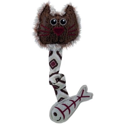 Kočičí obličej s ocáskem a rybkou, plyš/látka, šustící 20 cm - DOPRODEJ