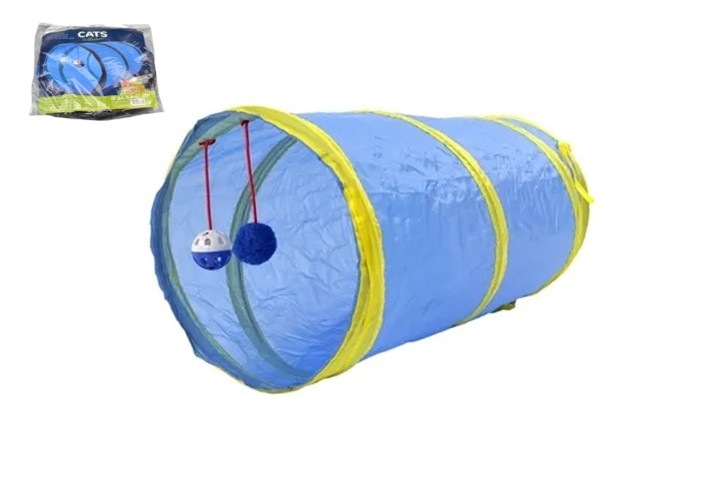 Tunel s rolničkami pre mačky - Modrý (24,5x51cm)