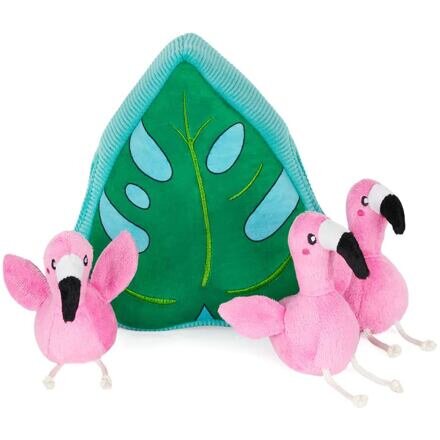 Vložte plameňáky do plyšového listu a sledujte, jak se je váš pejsek snaží vydolovat pomocí drápků, zubů nebo jazyku a vymýšlí další způsoby, jak je přimět vylézt z doupěte!Tato interaktivní hračka v roztomilém designu zaměstná pejska hrou na schovávanou, podpoří rozvoj jeho mentálních dovedností...