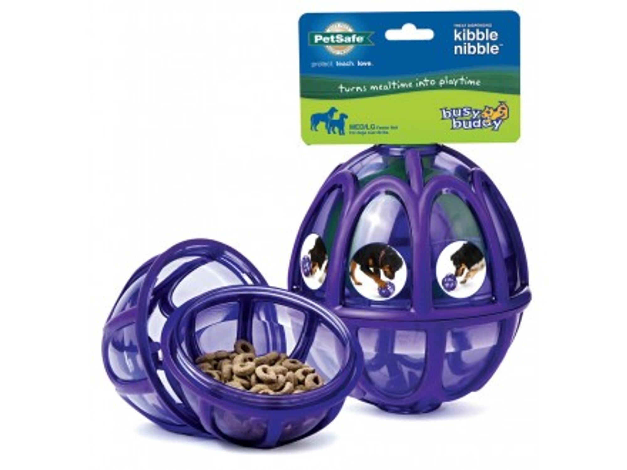 Hračka Kibble Nibble se dá použít jako dávkovač krmiva a zároveň i jako příjemná zábavka pro psa. Skladá se z dvou částí na závit. Dostupná ve dvou verzích S (vhodná především pro psy s váhou do 10kg) a M (vhodná především pro psy s váhou od 9-10 kg). Hračka je vyrobena ze zdravotně nezávadného materiálu - kombinace plastu a gumy, kde guma ochráni Váš nábytek před "odřením".