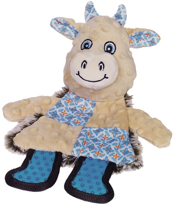 Hračka pro psy v podobě kravičky. Materiál: jemný krátký plyš Celková velikost 30 cm. Hračka s šustivým tělem a TPR prvky Upozornění: Hračka není vhodná ke stálému a silnému žvýkání. Hračka je určena k použití pod dozorem, poškozenou hračku zvířeti odeberte. Není určeno pro děti.