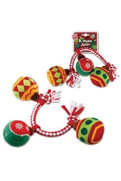 VÁNOČNÍ Hračka pes GiGwi Lano s míčky 32cm