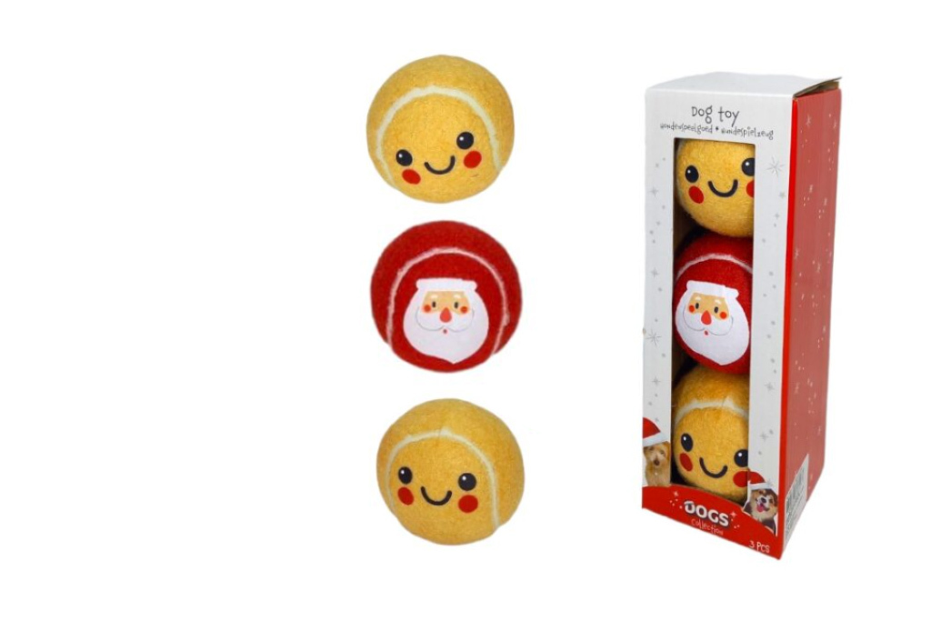 Sada 3 tenisových míčků, vánoční hračka pro psy