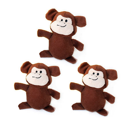 Tyto opičky jsou vhodné pro všechny milovníky maličkých plyšových zvířátek.Pokud máte malé plemeno psa, Miniz jsou ideální volbou! Můžete je využít ke hře samostatně nebo s nimi doplnit naše interaktivní hračky ZippyPaws Burrow.Každá opička má v sobě schované jedno kulaté pískátko.