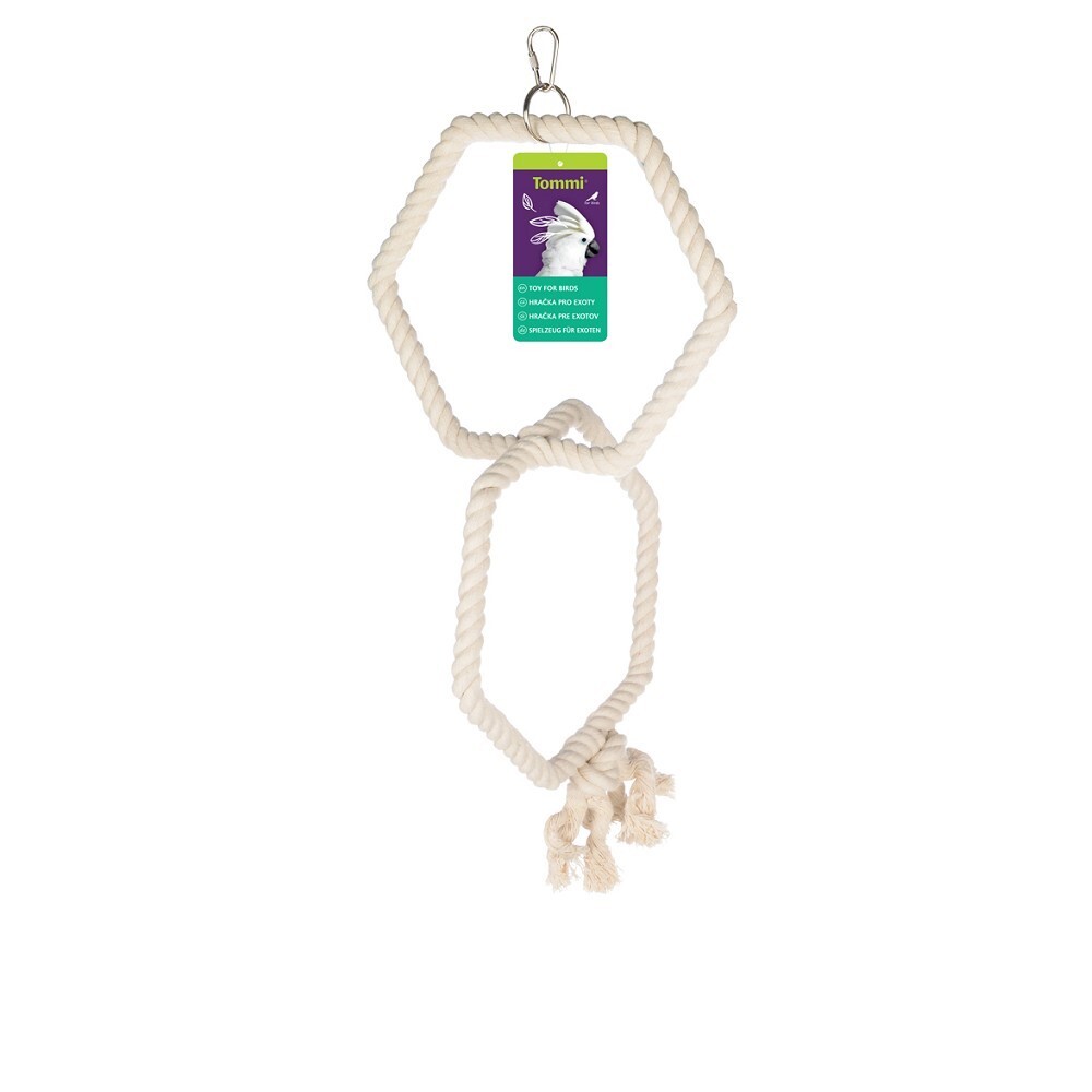 Bavlněná hračka, 2 oka - šestiúhelník pro velké exotyMateriál : bavlněné lano, kovDélka : 50 cmVnitřní průměr : 20 cm / 1 oko  prečítať celé