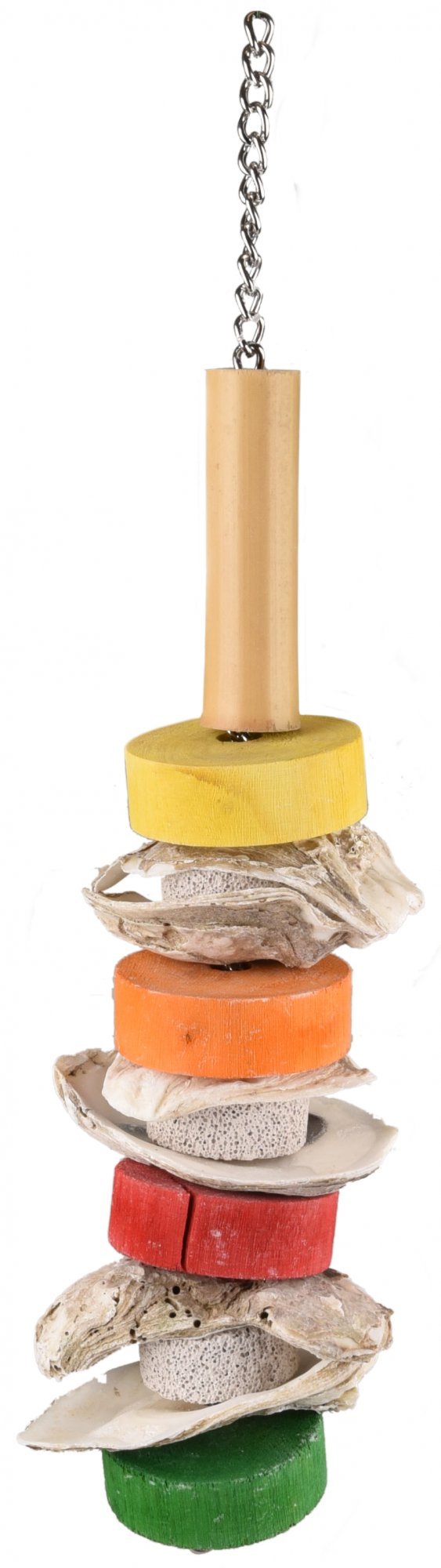 Táto farebná a rôznorodá hračka je navrhnutá špeciálne pre papagáje, aby podporila ich prirodzenú zvedavosť a potrebu hrať sa. Pomáha zabaviť aj tých najenergetickejších vtákov a zároveň prispieva k rozvoju ich motorických schopností. Vďaka svojej dĺžke 37 cm je vhodná pre rôzne druhy papagájov a ľahko ju pripevníte do klietky alebo voliéry.