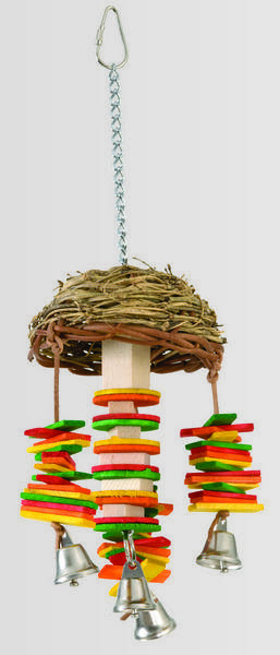 Střední hračka vhodná pro ptáky: Aratingu dlouhoocasou, Pionitse, Velkého Loriho, Amazónka, Papouška mnišího, Alexandra malého, Papouška senegalského, Aru malého, Aratingu sluneční, Aru žlutokrkou. Tato hračka podporuje interaktivní hru tím, že navnazuje vašeho ptáka, aby se houpal, šplhal a zůstal aktivní zábavným způsobem. Rozměr 33 × 10 × 10 cm.