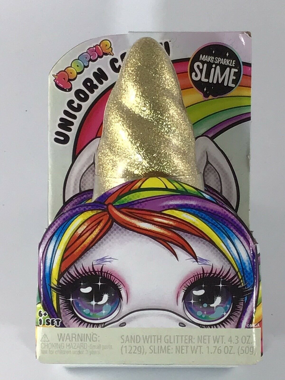 Třpytková expoloze! Namoč Roh jednorožce do vody na 8 – 10 sekund, pořádně ho zmáčkni a dočkáš se hotové záplavy třpytek. Do třpytek dej přiložený sliz i Roh jednorožce a vytvoř kouzelný jednorožčí sliz, který můžeš uchovávat v obalu na Roh.