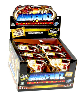 Už vás nebaví klasičtí dinosauři? Nevadí, je tady Dinofroz. Sada 30-ti crazy pravěkých ještěrů. Jsou barevní, jsou strašidelní a vzácným dinosaurům některé jejich části svítí ve tmě. V každém balení je plastová hrací karta s obrázkem dinosaura a krátkým popiskem. Nasbírejte všech 30 crazy figurek...