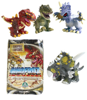 Už vás nebaví klasičtí dinosauři? Nevadí, je tady Dinofroz. Sada 30-ti crazy pravěkých ještěrů. Jsou barevní, jsou strašidelní a vzácným dinosaurům některé jejich části svítí ve tmě. V každém balení je plastová hrací karta s obrázkem dinosaura a krátkým popiskem.