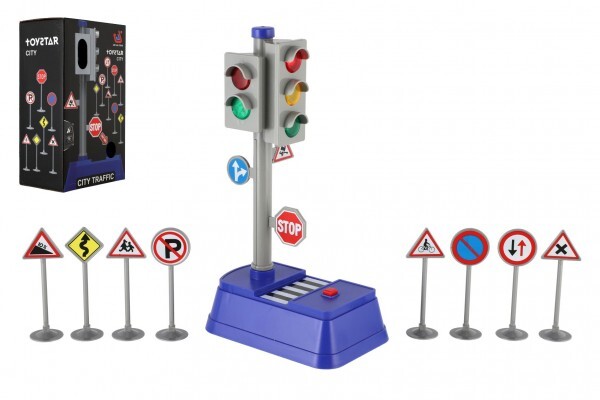 Semafor se značkami plast 14x24cm na baterie se světlem se zvukem v krabici 14x24,5x9cm