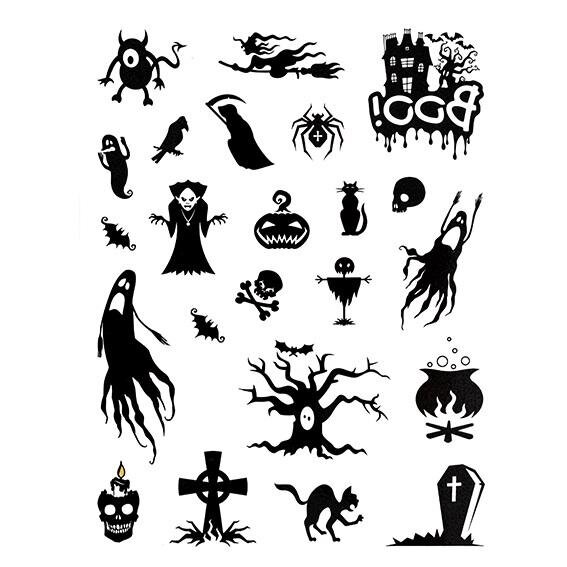 Tatuaże zmywalne Halloween 23szt biało-czarne