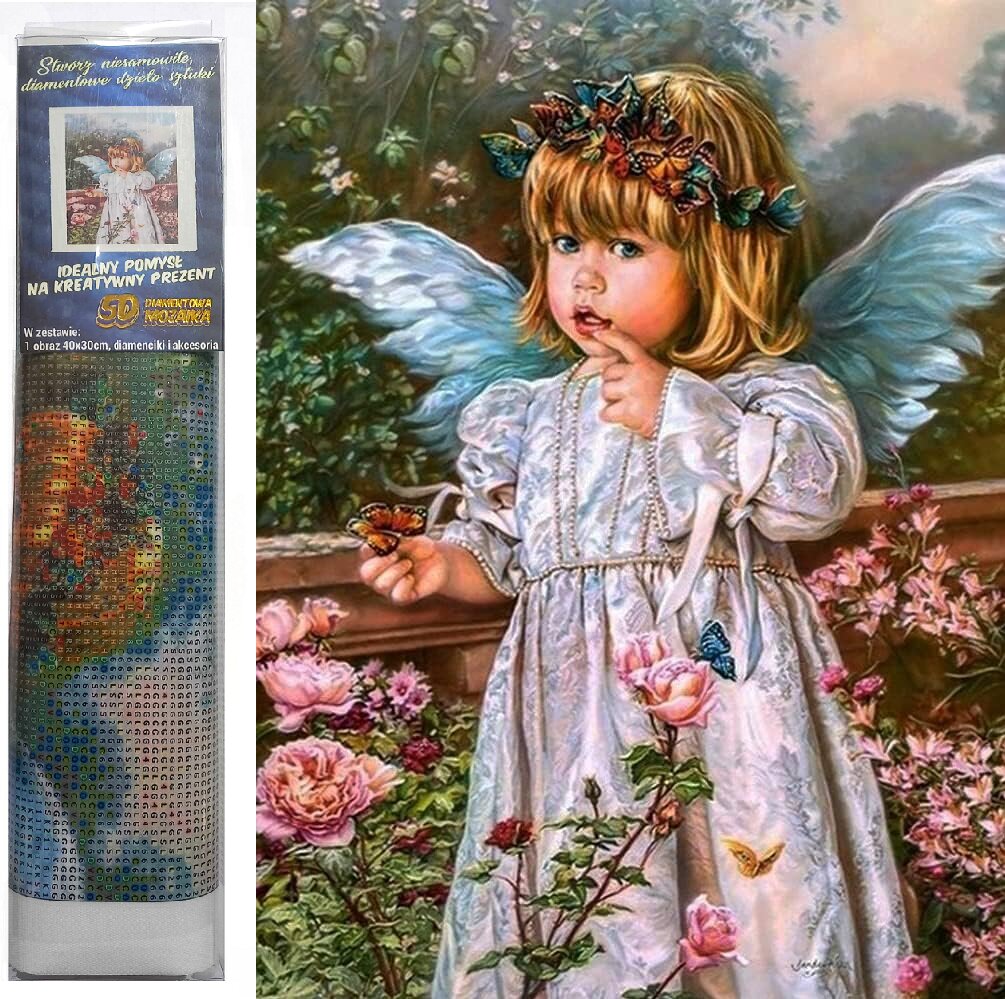 NORIMPEX Diamantové malování Andílek s květinami 30x40cm