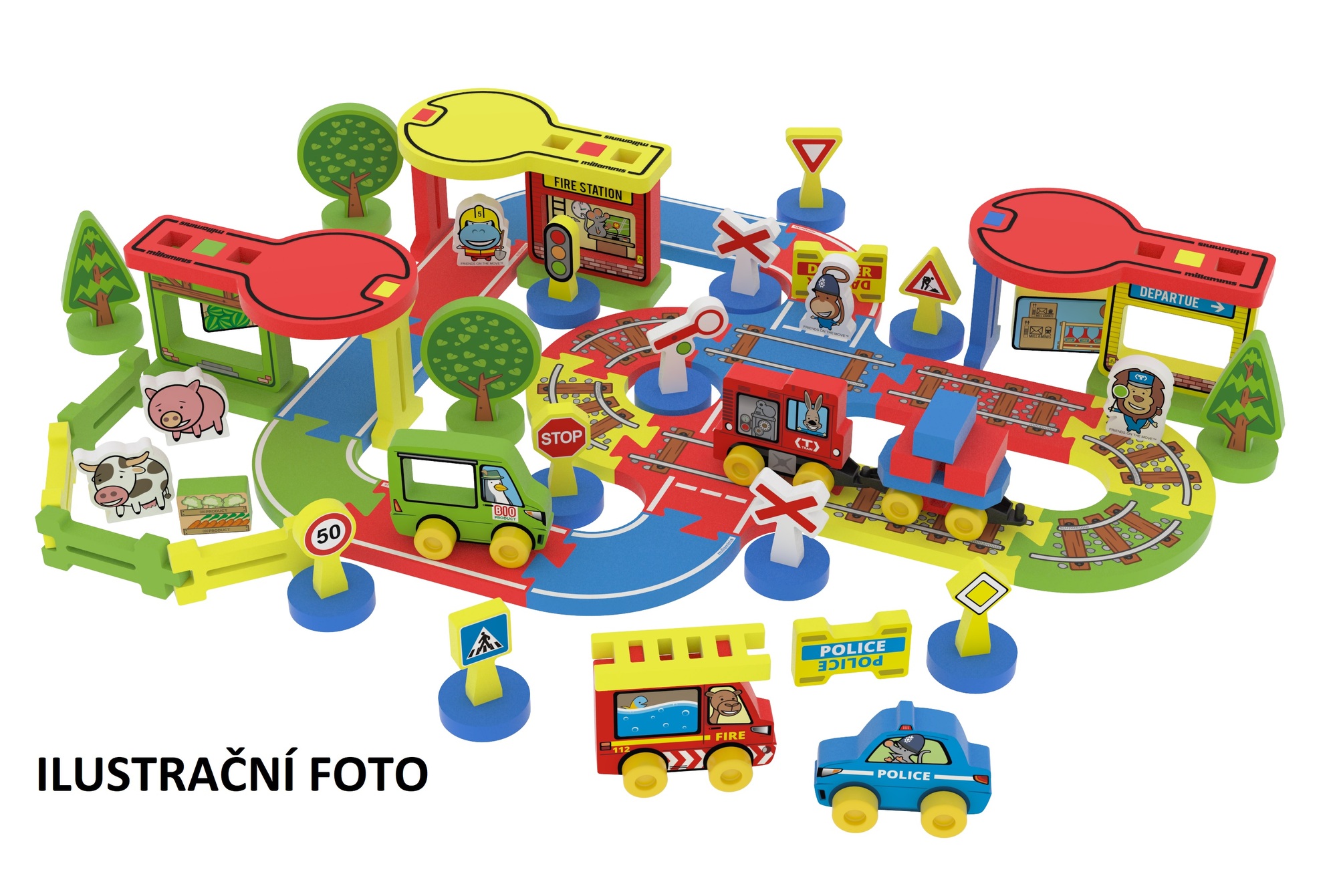 Set umožní dětem hrát si v prostředí, kde mohou při hře poznat život ve městě a při tom rozvíjet svou jemnou dětskou motoriku, vzdělávat se v dopravní nauce, poznávat různé profese, zvířátka, barvy atd. Díky svému koncepčnímu prostředí zabaví děti na dlouhou dobu. K dispozici jsou 2 varianty...