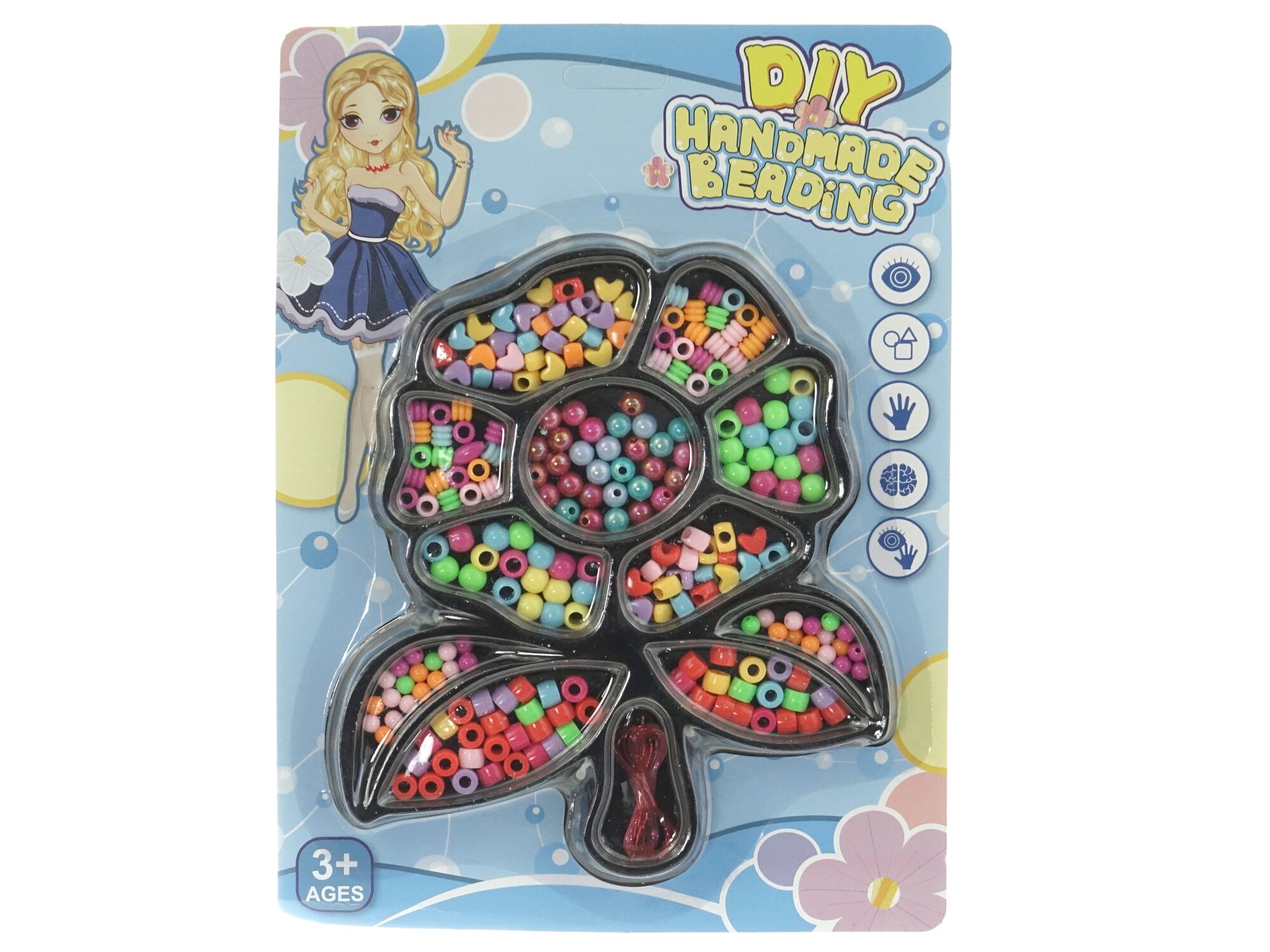 - Obsahuje rozmanité koráliky vhodné na navliekanie.
