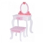 Drewniana toaletka dziecięca z krzesłem od marki TOOKY TOY. Każda dziewczynka zasługuje na piękną toaletkę z dużym lustrem oraz krzesłem w swoim pokoju dziecięcym, która pozwoli jej codziennie wyglądać pięknie. Toaletka została wykonana z litego drewna, ozdobiona białymi i różowymi kropkami.