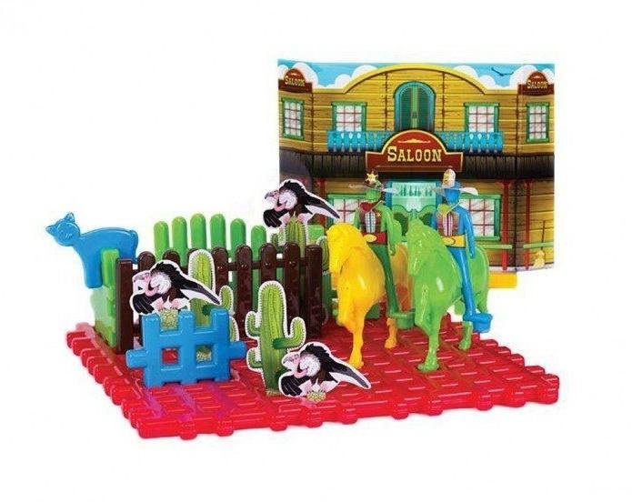 Zestaw klocków konstrukcyjnych Dziki Zachód, 15 elementów + podstawa.Klocki konstrukcyjne to zabawka, która rozwija kreatywność, zdolności manualne i wyobraźnię dziecka.Klocki wafle pozwalają na układanie wyjątkowych przestrzennych konstrukcji, a ich wygląd zależy tylko od wyobraźni...
