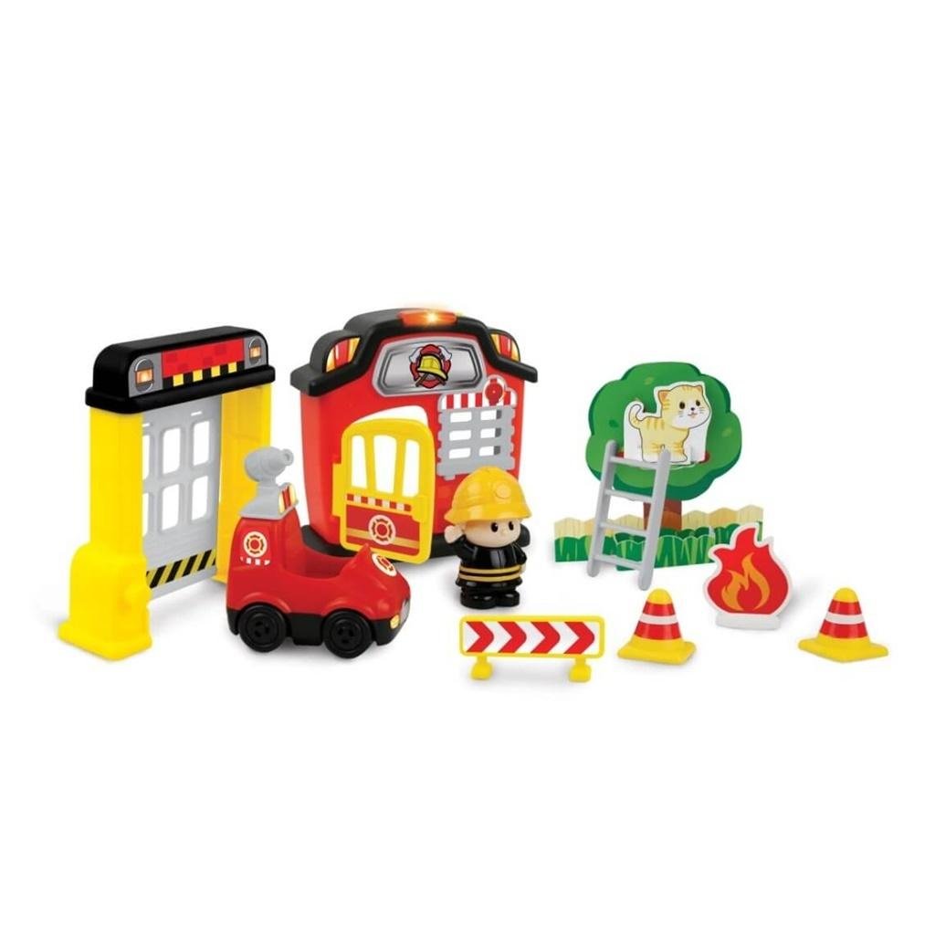 Remiza Strażacka Smily Play to zestaw do zabawy dla najmłodszych z kolekcji Kraina Zabawy. Remiza Strażacka pomaga małym dzieciom rozwijać wyobraźnię, umiejętności społeczne i wcielanie się w nowe role. Zestaw zawiera: remizę strażacką z ruchomą bramą figurkę strażaka i kota wóz strażacki bramę...