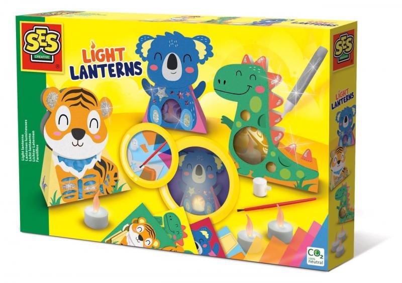 Skvělé, s touto sadou SES si můžete vyrobit vlastní zvířecí lucerničky. Zvířátka jednoduše složte, ozdobte barevnou fólií a třpytkami. Vložte LED svíčku do každé lucerničky a podívejte se, jak krásně svítí! Sada obsahuje: 3 LED svíčky (3x CR2032, baterie není součástí balení), 3 zvířecí lucerničky, 5 barevná fólie, lepidlo, štětec, stříbrné třpytkové lepidlo, návod. Rozměr balení: 30 x 20 x 4 cm. Věk: 5+