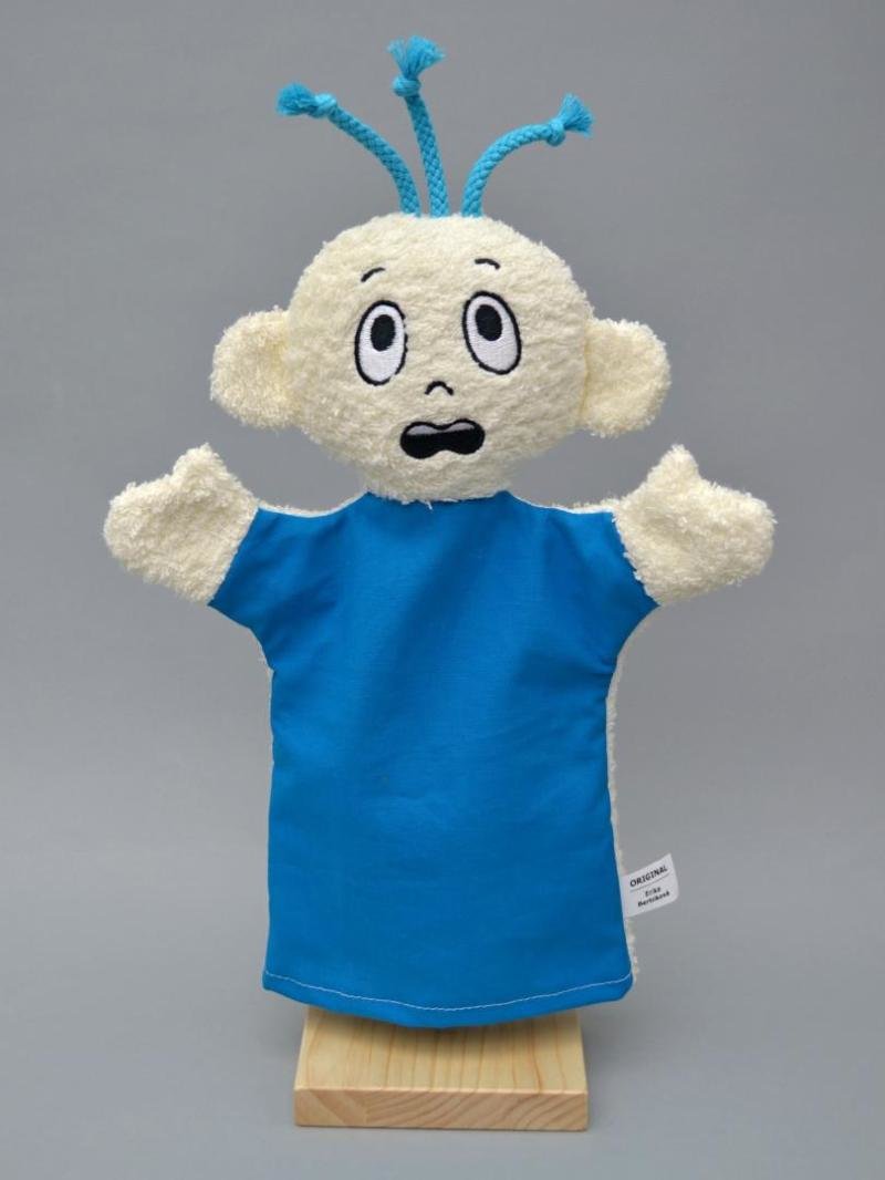 Textilní maňásek představující emoci strach, vhodný pro psychologické poradny, speciální pedagogy, učitele ve školkách a dětských skupinách a také pro domácí hraní. Vyrobeno z přírodních materiálů. Obličej je vyšitý, hlavičky měkce cpané a celý maňásek je velmi příjemný na omak. Pratelný....