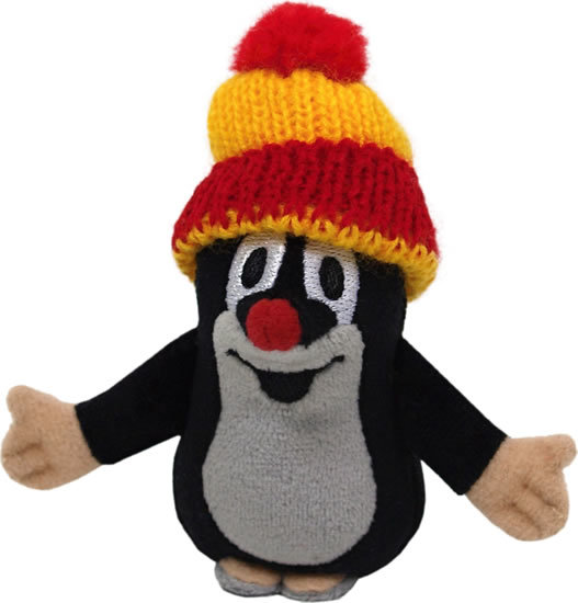 Plyšový Krteček s červeno-žlutým sundávacím kulichem. Pratelný.Pro děti bez omezení věku, CE prečítať celé