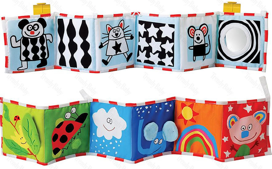 Vhodné do většiny kočárků i postýlek. Pro věk 0-3 měsíce: Strana 1 s vysoce kontrastními barvami a vzory, nerozbitné zrcátko a veselé jednoduché obrázky pomáhají vývoji smyslů a emoční inteligence dítěte. Pro věk od 3 měsíců: Strana 2 s veselými obrázky ve výrazných barvách s různorodými...