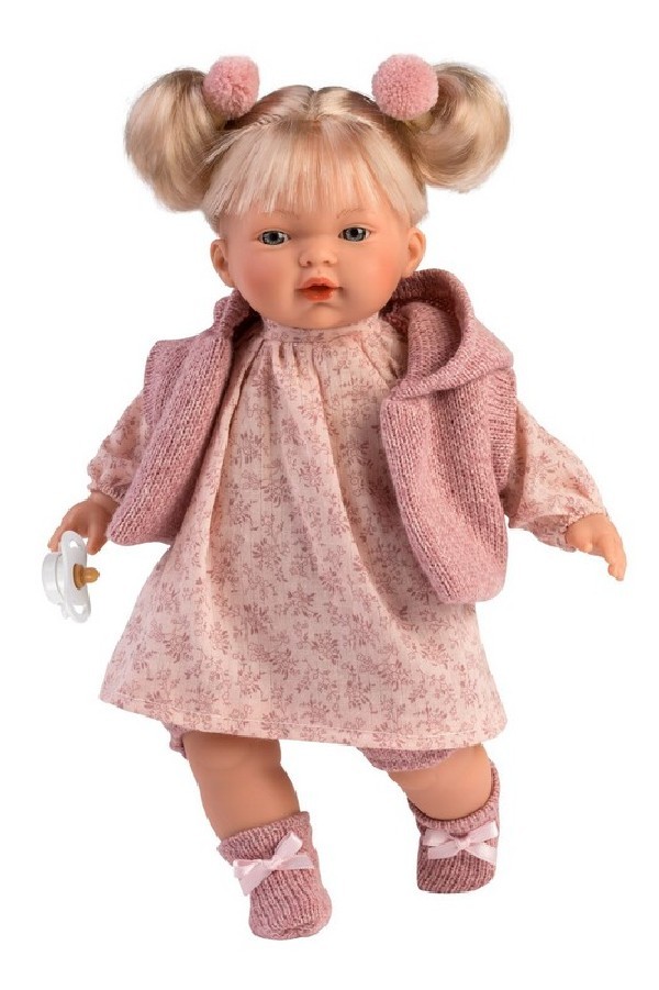 Mluvící a plačící panenka (po vyjmutí pojistky ihned funkční) s měkkým látkovým tělem a s vlásky po celé hlavě. Hlava a končetiny jsou vyrobené z kvalitního měkčeného vinylu. Po vytažení dudlíku z úst začne panenka říkat „mama“, „papa“ a vydávat reálný zvuk plačícího dítěte, který lze utišit opět...
