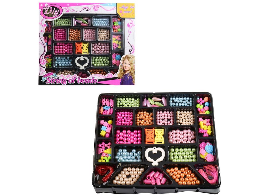 Kreativní sada pro výrobu náramků a ozdob do vlasů potěší jistě každou malou slečnu. Zvláště, když si může ozdoby sama vytvořit podle svého vlastního vkusu. Sada obsahuje menší (5 mm) i větší (8 mm) kulaté korálky, i korálky různě tvarované. Dále dvě přezky, několik přívěsků, dva plastové provázky. Tedy vše potřebné pro dokonalý výrobek. Rozměr boxu 27 x 23,5 x 4 cm. Vhodné pro děti od 3 let.