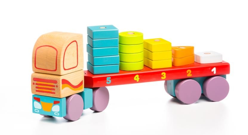 CUBIKA 13425 Kamion s geometrickými tvary - dřevěná skládačka 19 dílů