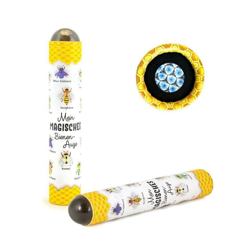 Podívejte se na svět očima včel! Tento magický kaleidoskop způsobuje, že svět vypadá zkresleně jako ve voštině. Otočte to a objevte jedinečné a fascinující vzory. Poznáte také mnoho různých druhů včel z celé Evropy na láskyplně navrženém krytu kaleidoskopu. Materiál: kvalitní lepenka, skleněné tělo. Rozměr: cca 18,8 cm, O 3,7 cm
