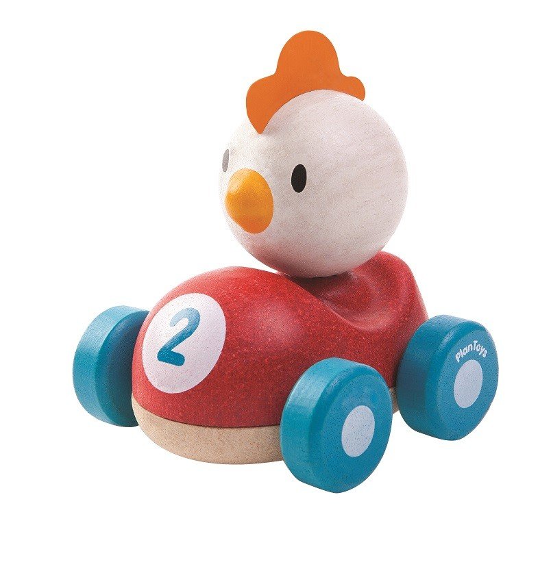 Užijte si skvělou zábavu s tímto závodníkem v podobě kuřete. Křivky vozu jsou detailně propracovány pro lepší úchop a manipulaci a děti tak mohou lehce trénovat jemnou motoriku.