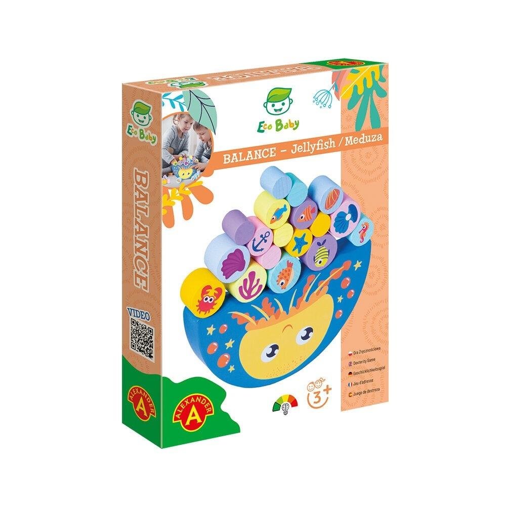 Dzięki specjalnie wyciętemu kształtowi zabawka przechyla się pod wpływem nakładanego ciężaru. Zabawa polega na tym, aby ułożyć wszystkie walce na bazowym kształcie. Maluchy mogą dowolnie wybierać walce wedle swoich upodobań. Dzieci, które nabiorą wprawy wykonują najpierw rzut kostką a następnie...