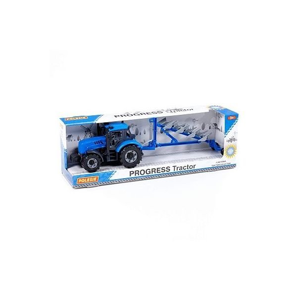 Traktor Progres" na setrvačník od společnosti "Polesie" je věrnou napodobeninou skutečného traktoru s pozoruhodným zpracováním detailů. Kapota traktoru je otevírací s aretací při hře "na opravu motoru". Přívěs tvoří pluh a má polohy "pracovní" a "přepravní". Hračka je dodávána v krabici."