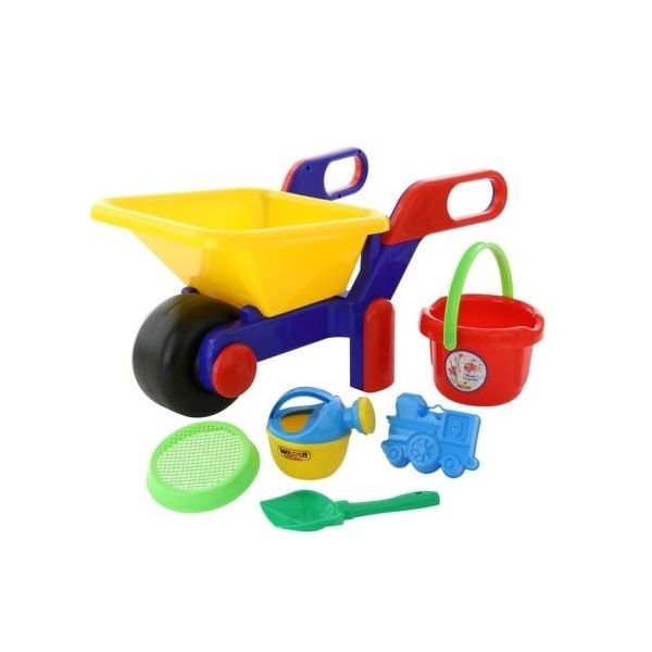 Sada na písek č. 455: Kolečko č.4: Kbelíček velký: sítko, konývka, lopatka, formička. Baleno v síťce, rozměry: 640 x 340 x 320 mm /+1 prečítať celé