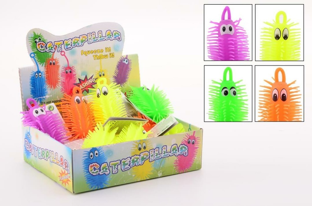 Veselá střečová housenka svítící. Velikost 12 cm. Barva – žlutá, oranžová, fialová a zelená. prečítať celé