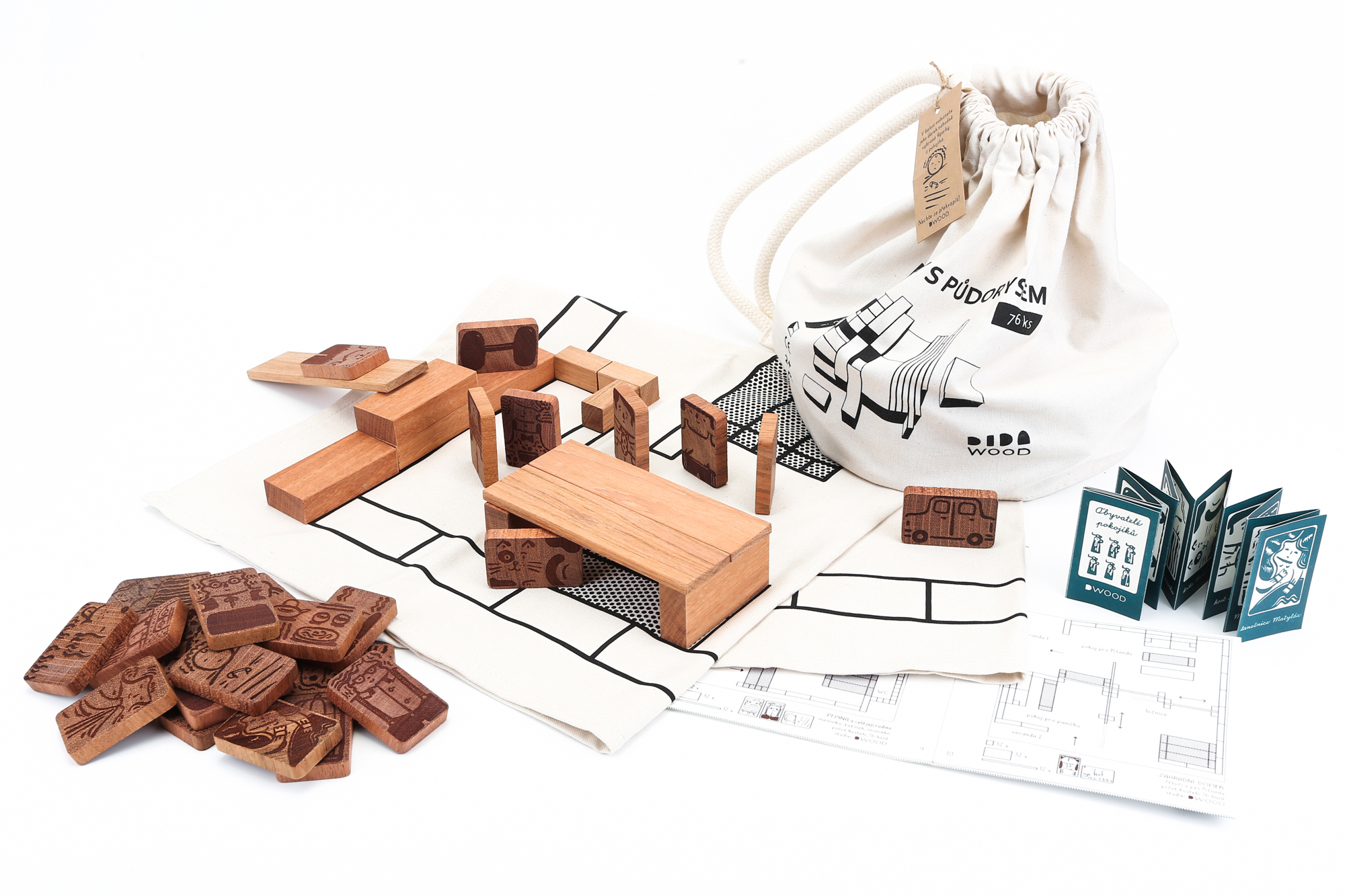 DWOOD Obyvatelé pokojíků dřevěná stavebnice 76 + 27 dílů