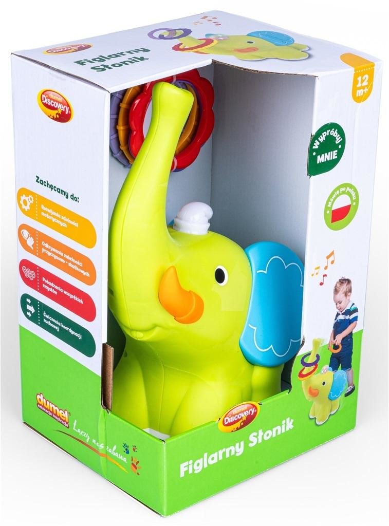 Razem ze Słonikiem ćwicz celność i przekonaj się czy jesteś zwinniejszy od niego! Zabawa polega na wrzuceniu wprost na słoniową trąbę kolorowych obręczy, które znajdują się w zestawie. Żeby nie było tak łatwo, cel jest ruchomy, gdyż słonik przemieszcza się, jeżdżąc we wszystkich kierunkach....
