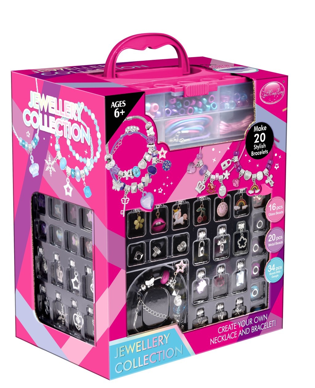 Sada ponúka všetko, čo potrebujete na výrobu až 20 unikátnych náramkov. Navyše obsahuje praktickú šperkovnicu pre bezpečné uloženie vašich materiálov a hotových šperkov, a elegantný stojan, ktorý vám umožní vaše diela vystaviť a pyšne ukazovať ostatným.
