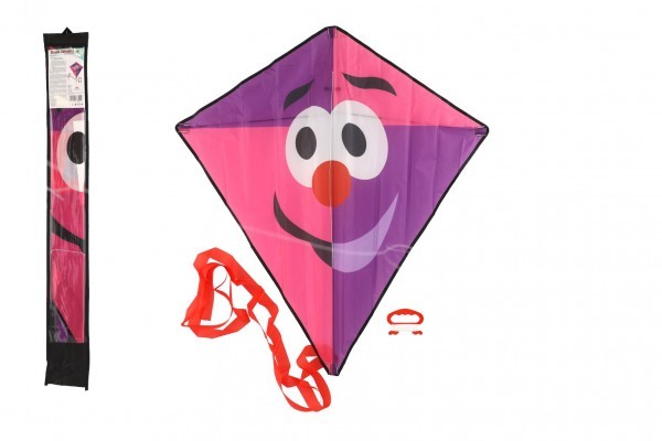 Drak létající klaun nylon 78x86cm růžovo-fialový v látkovém sáčku 11x90x2cm